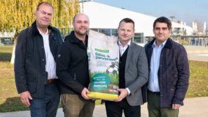 Die Übergabe des Saatguts fand im Florian Berndl Bad gemeinsam mit dem Korneuburger Bürgermeister Christian Gepp, seinem Amtskollegen Johannes Stuttner aus Bisamberg, Bad-Geschäftsführer Ulf Seifert sowie Andreas Haas, Abteilungsleiter Saatgut Consumer Products der RWA Raiffeisen Ware Austria, statt.
